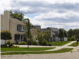 Asphalt streets, tree-lined streets, street lighting and uniform mailboxes.
