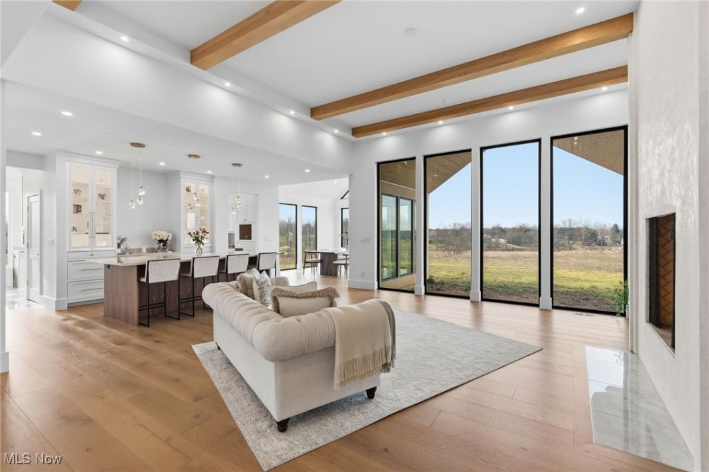 Set on over 5 acres in Lake Twp in the Lake Local School District, this newly built home delivers a refined blend of modern design, thoughtful craftsmanship & everyday functionality. With 2,829 sq ft, 3 bedrooms & 2.5 baths, the home is designed to offer elevated living & effortless flow. The open floor plan is anchored by soaring ceilings & exceptional natural light throughout. The great room makes a striking impression w/ exposed beam ceilings, a dramatic fireplace, expansive island w/ breakfast bar, built-in cabinetry & coffee bar. Custom Amish-made cabinetry is featured throughout, paired w/ high-end engineered hardwood flooring & carefully selected finishes at every turn. The chef's kitchen offers Taj Mahal quartzite countertops, stainless steel appliances, an appliance lift system, VacPan vacuum & built-in desk. A butler's pantry adds additional prep & storage space. The dining room is a true showpiece w/ a 12-ft vaulted ceiling & floor-to-ceiling windows on all sides, w/ direct access to a covered outdoor area, ready for a future patio. A bonus room off the foyer offers flexibility as a home office, den, or additional living space. The primary suite is a private retreat, w/ a spacious walk-in closet & a spa-inspired en-suite bath w/ oversized zero-entry shower & rough-in for a bathtub. One guest room has a walk-in closet & en-suite bath. Additional highlights include a heated & cooled attached 2-car garage, whole-house interior, exterior & garage speaker wiring, exterior water spigots w/ hot water, gas line for generator, electric rough-in for under-cabinet island lighting & dedicated water line for a built-in coffee machine. The home is equipped with extra-large A/C capacity for efficiency & comfort. The full 9-course basement offers exceptional future potential w/ rough-in for a full bath, kitchen w/ garbage disposal, sauna, and more. Located just minutes from OH-43, OH-619, parks, shopping, dining & local attractions. This home is a must see!